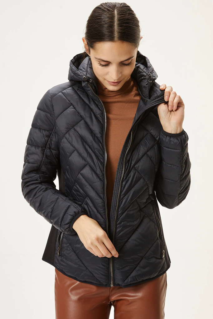 Campera ultra liviana, corta tipo pluma. Exterior con matelase de bastones horizontales y recorte lateral de tejido combinado al tono generando una silueta entallada y cómoda. Tiene capucha desmontable. Género repelente al agua, liviano, tacto suave y satinado. Su novedoso relleno trabajado artesanalmente tipo pluma ecológica es de alto abrigo muy suave y liviano. El acceso es por cierre reforzado. Todos los bordes de la prenda están envivados en bies elástico al tono, generando un cierre más anatómico no dejando entrar el frío. Tiene bolsillos laterales con cierres reforzados y tiradores con logo MaxG. En el interior tiene bolsillos con cierre. La campera se puede lavar en lavarropas.
