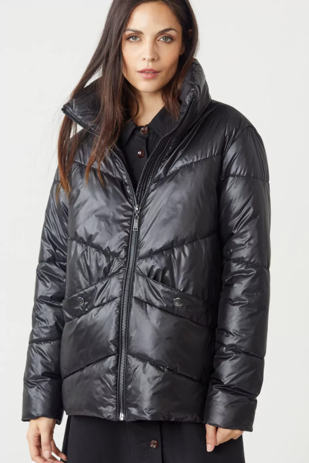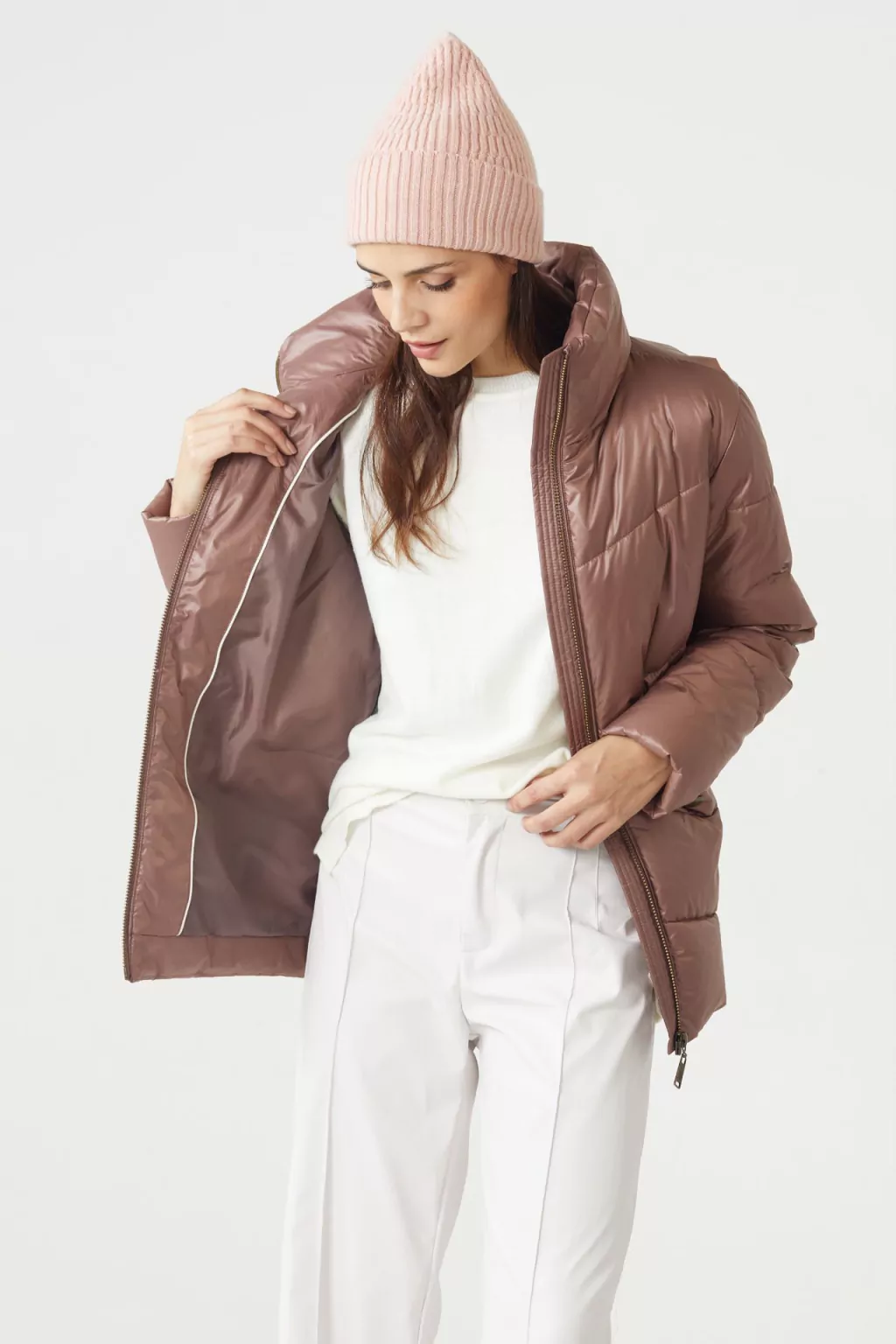 Campera ultra liviana, tipo pluma. Silueta oversize delicada y cómoda. Cuello alto. Género repelente al agua, liviano, tacto suave y brillante. Su novedoso relleno trabajado artesanalmente tipo pluma ecológica es de alto abrigo muy suave y liviano. El acceso es por cierre ancho reforzado. Tiene bolsillos diagonales de entrada vertical con broche. En el interior tiene bolsillos con cierre. La campera se puede lavar en lavarropas.