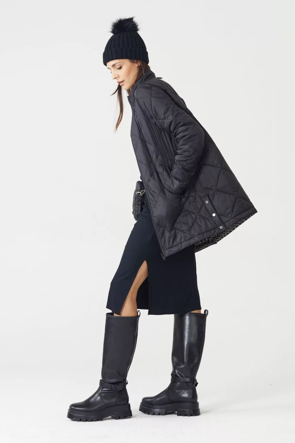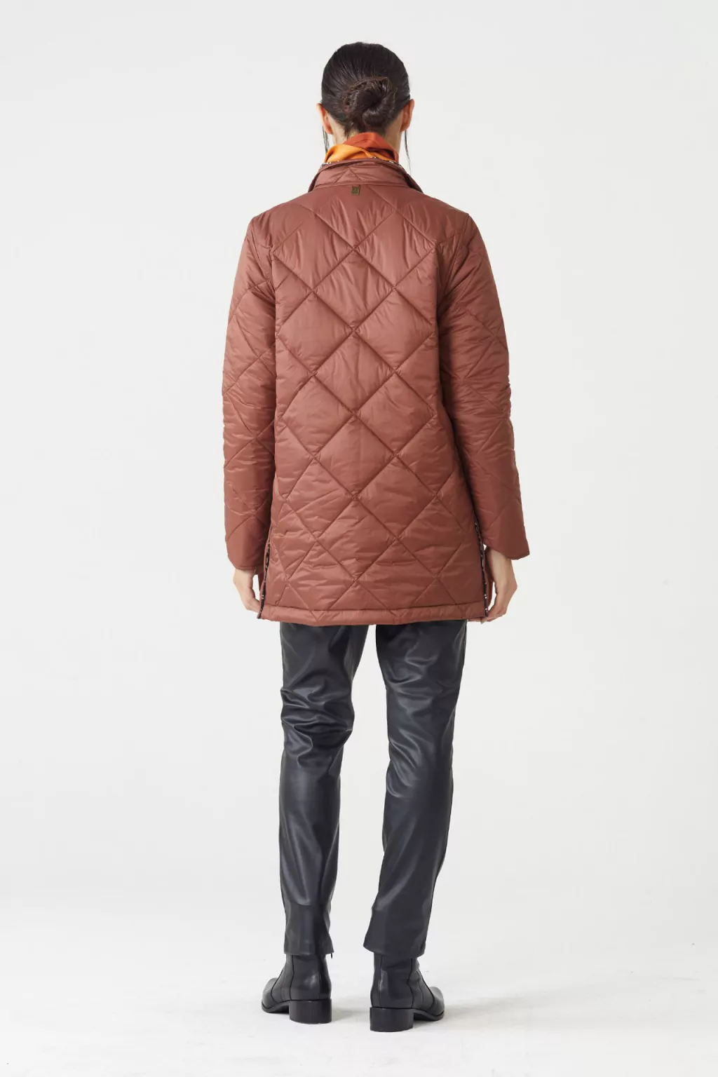 Tapado reversible liviano,corte recto y cómodo. Tiene un relleno ligero y suave. El acceso es por cierre reforzado símil metal con tirador con logo. Tiene bolsillos laterales con cierres y tajos con broches. El Interior es estampado con bolsillos verticales. La prenda se puede lavar en lavarropas.