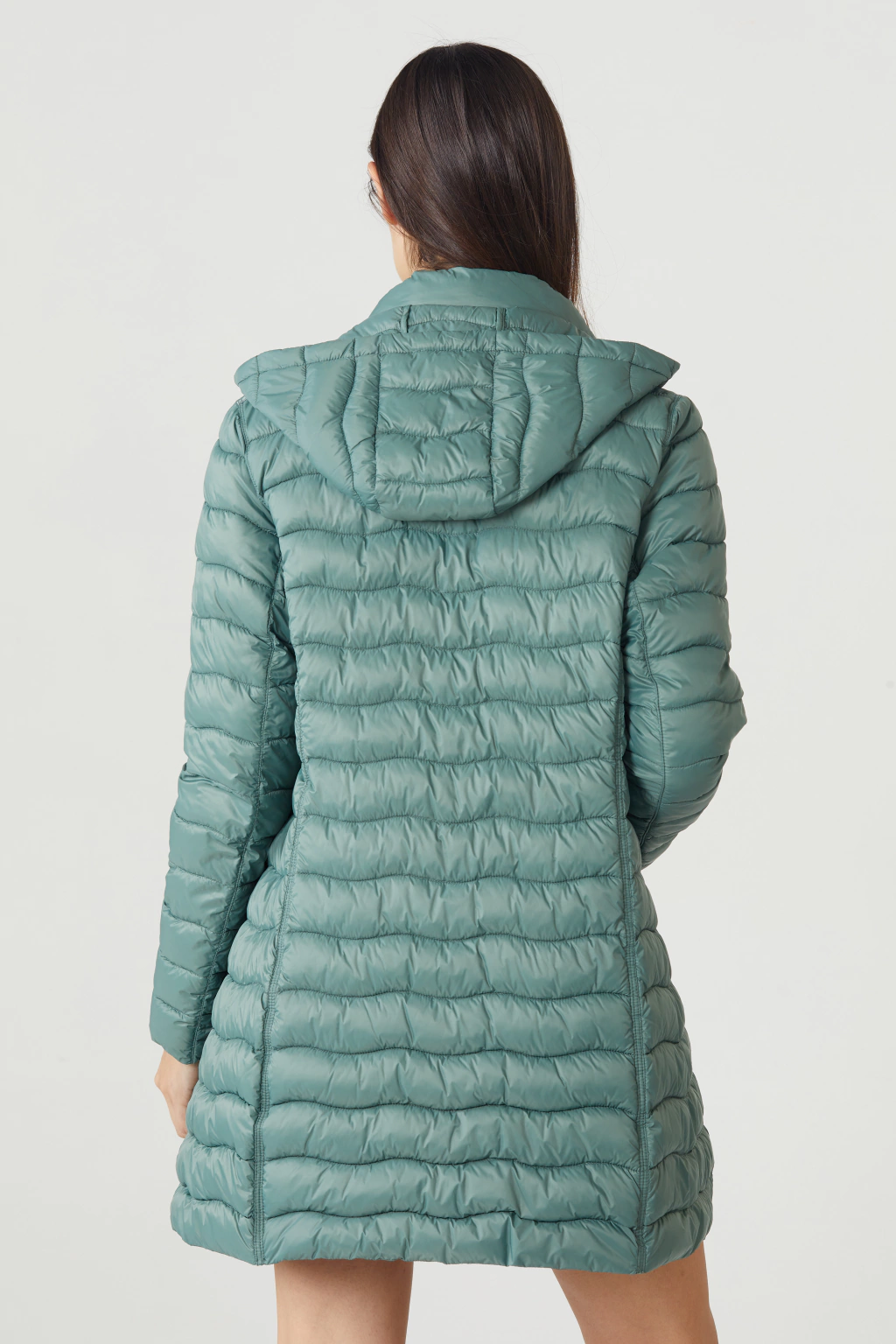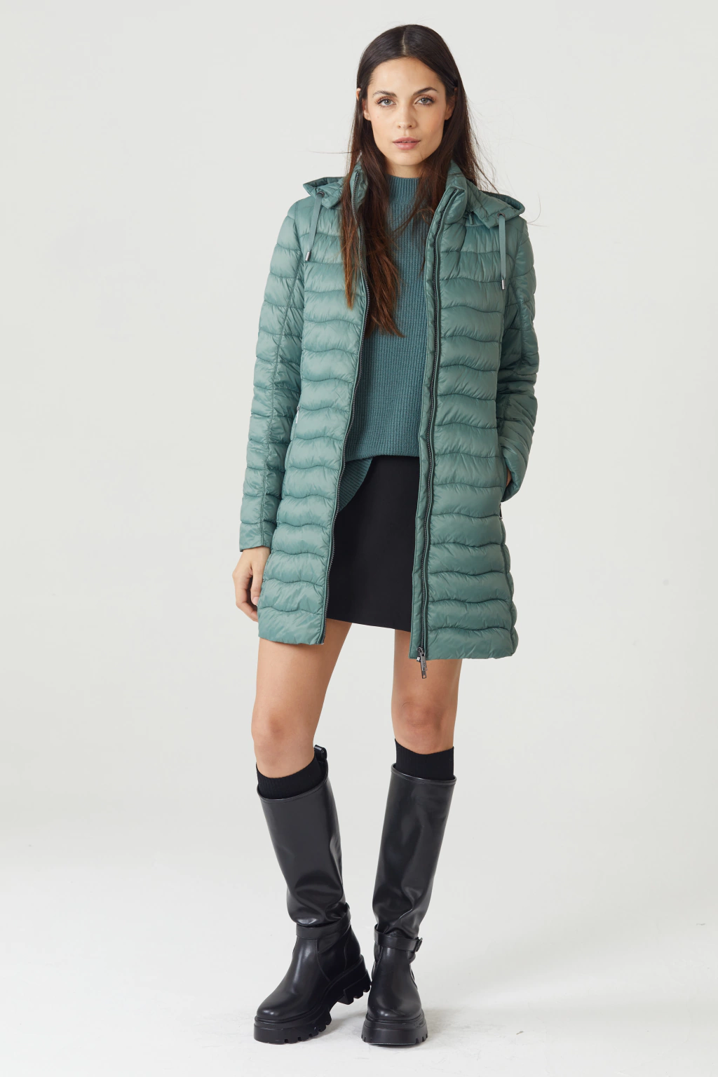 Tapado ecodown, ultraliviano y abrigado con capucha desmontable. Su novedoso relleno trabajado artesanalmente tipo pluma ecológica es de alto abrigo muy suave y liviano. El corte es entallado y muy cómodo. El acceso es por cierre doble carril reforzado símil metal. Tiene bolsillos laterales con cierres reforzado simil metal. La prenda se puede lavar en lavarropas. Repelente al agua.